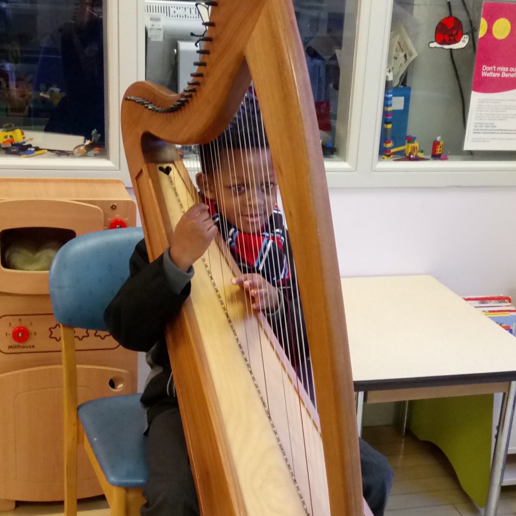 Delivering live harp music sessions in hospital wards, schools, care homes and community settings for over 12 years.